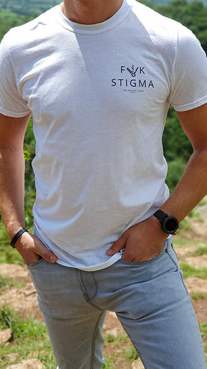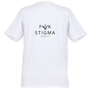 Our F**k Stigma FOH tees are available in black and white.