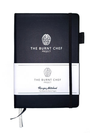 A custom designed 150-page Burnt Chef Project recipe journal.